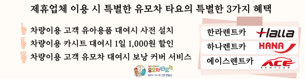 딜리버리 가능 업체 페이지 정보 작성자 김정훈 작성일25-02-19 10:02 조회516회 댓글0건 다음글 목록 본문 유모차타요는 해당 렌트카 전용 유아용품 대여점 입니다. 제주한라렌트카 제주하나렌트카 제주에이스렌트카 해당 렌트카 이용시 사전설치 가능 합니다. 댓글목록 등록된 댓글이 없습니다. 다음글 목록